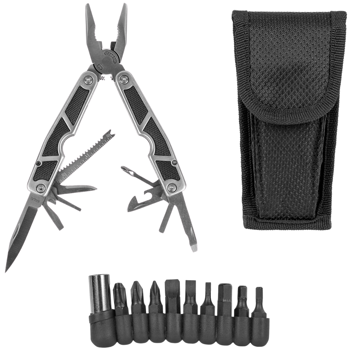 Descrição: Alicate robusto e compacto que combina 21 funções essenciais para reparos rápidos, acampamentos e tarefas diárias.
