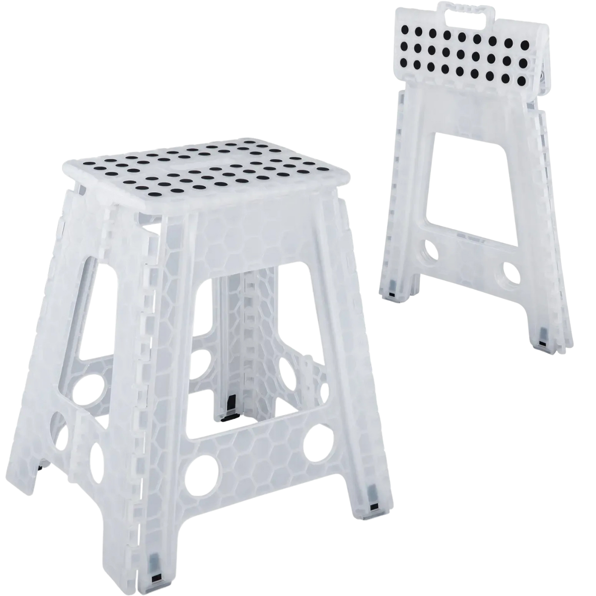 Benefícios: Prática e leve; Anti derrapante e dobrável; Possui alça para transporte (quando fechada); Produzida com Plástico Polipropileno.