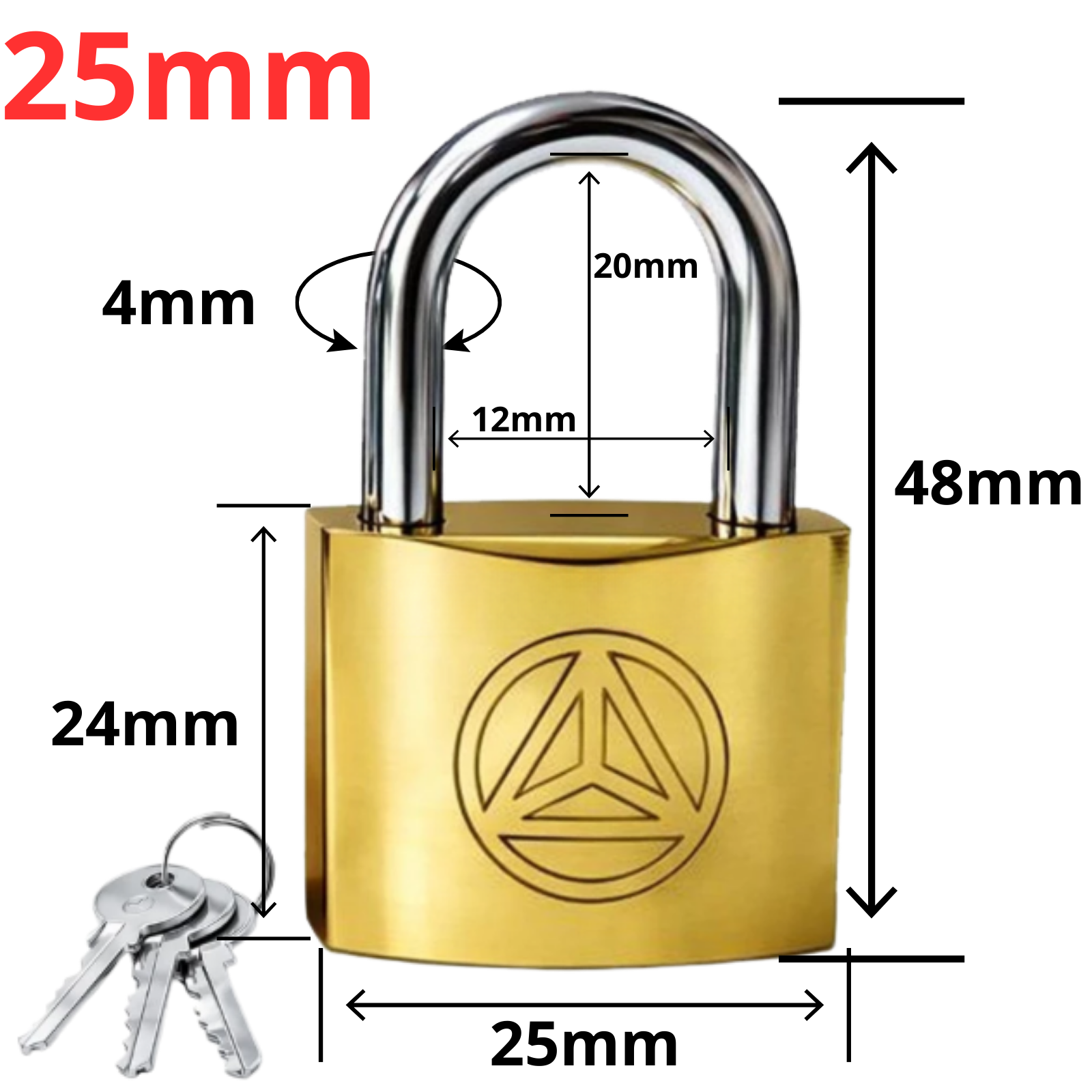 Cadeado Dourado 25mm 3 Chaves Latão Armário Mochila Portão
