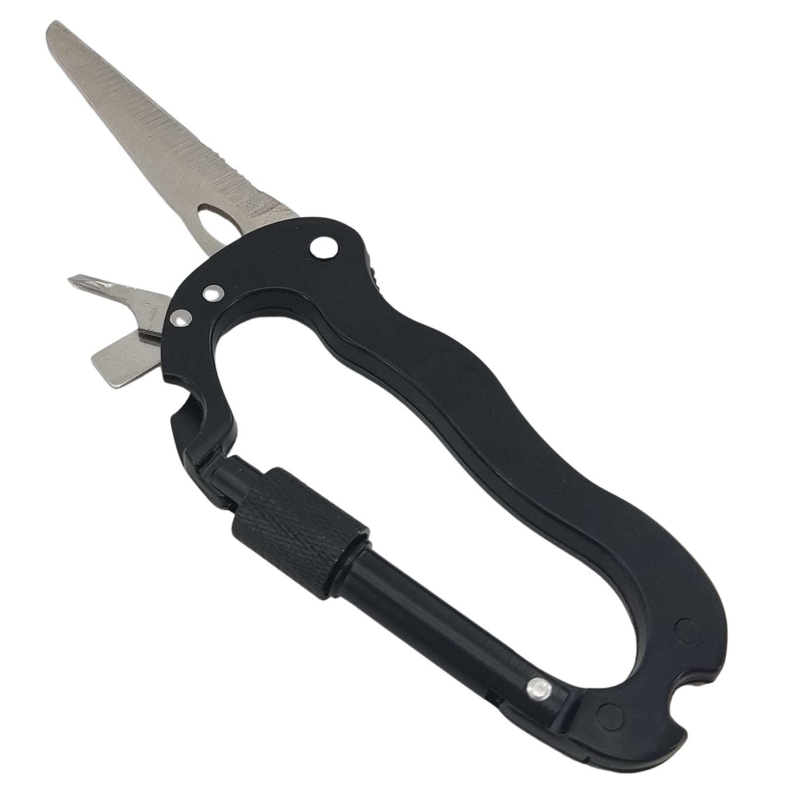 - Mosquetão multifuncional de montanhismo para atividades ao ar livre, alta dureza com canivete dobrável portátil.