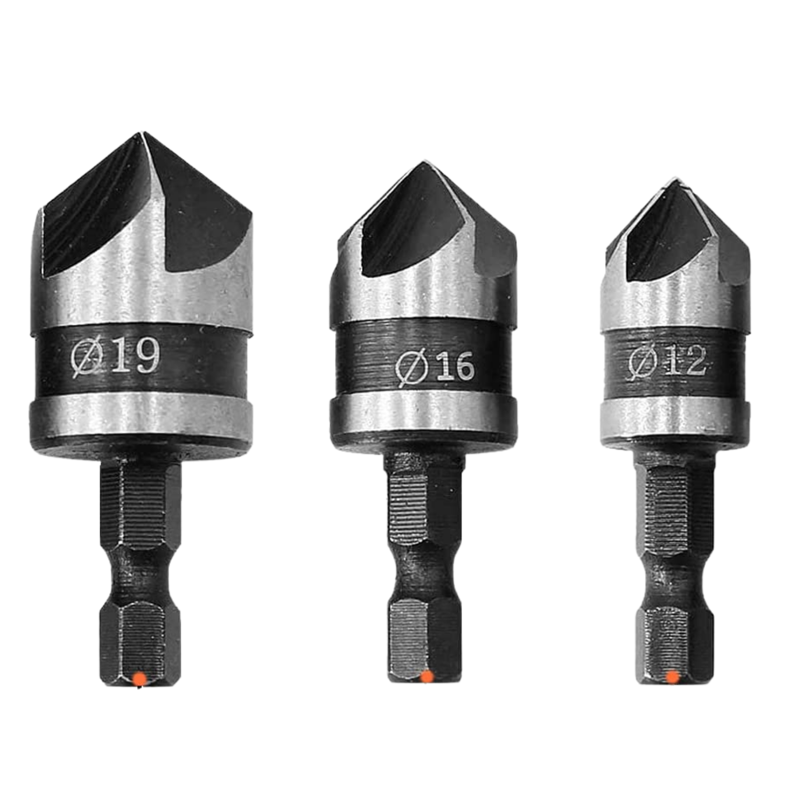Conjunto de 3 brocas escareadoras chanfradas (12 mm/16 mm/19 mm)