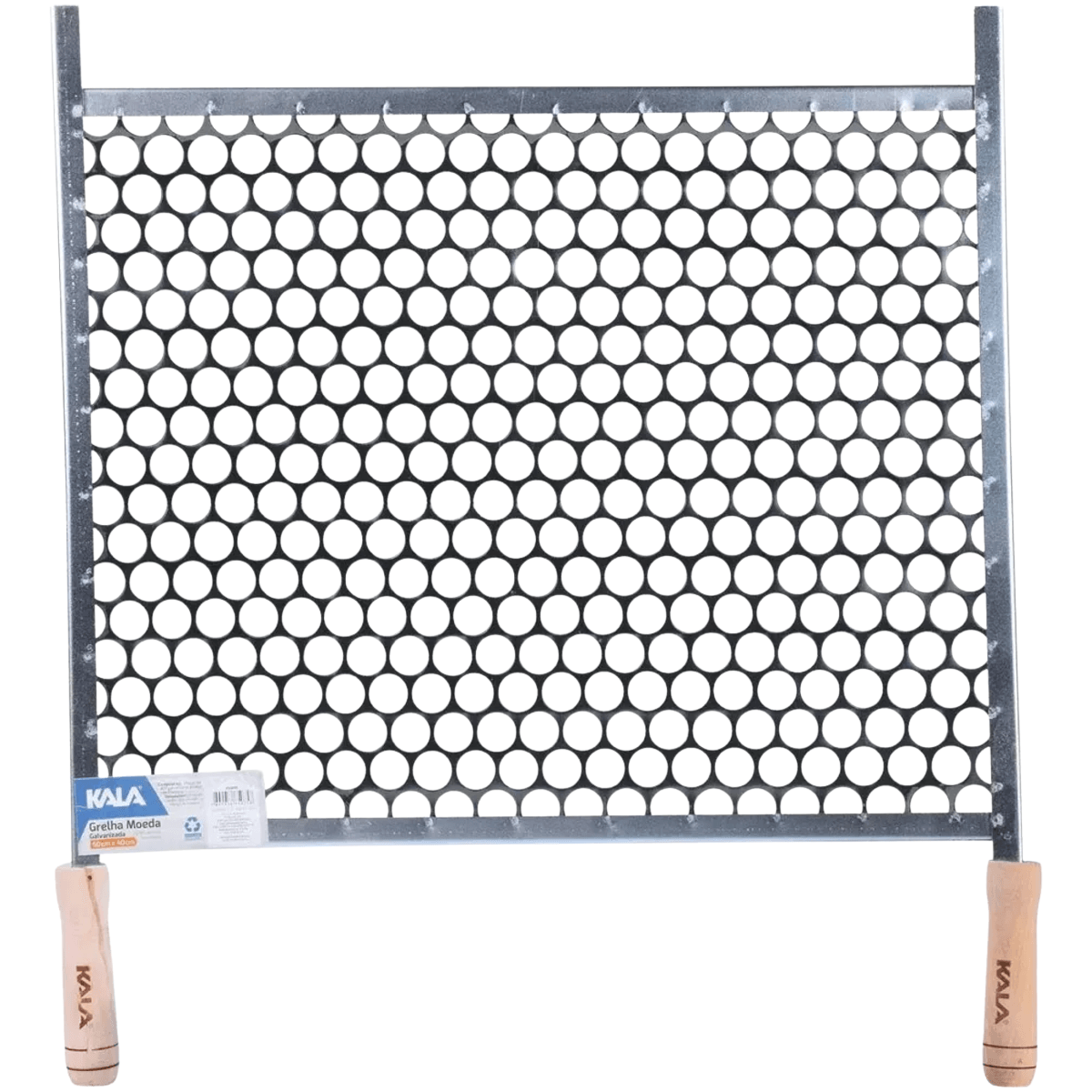 Nome: Grelha Moeda Galvanizada 60x40cm com Cabo de Madeira Kala