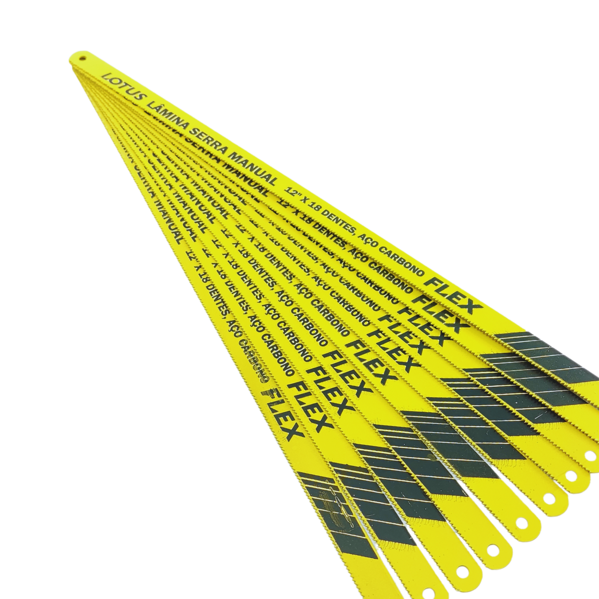 Lâmina de serra manual, flexível, com 12" (Aprox. 30cm), produzida em aço carbono, alta flexibilidade e resistente ao desgaste, Flex, super econômica. Ideal para cortar tubos de aço macio, cobre, perfilados, cantoneiras, alumínio, latão, plástico e similares.