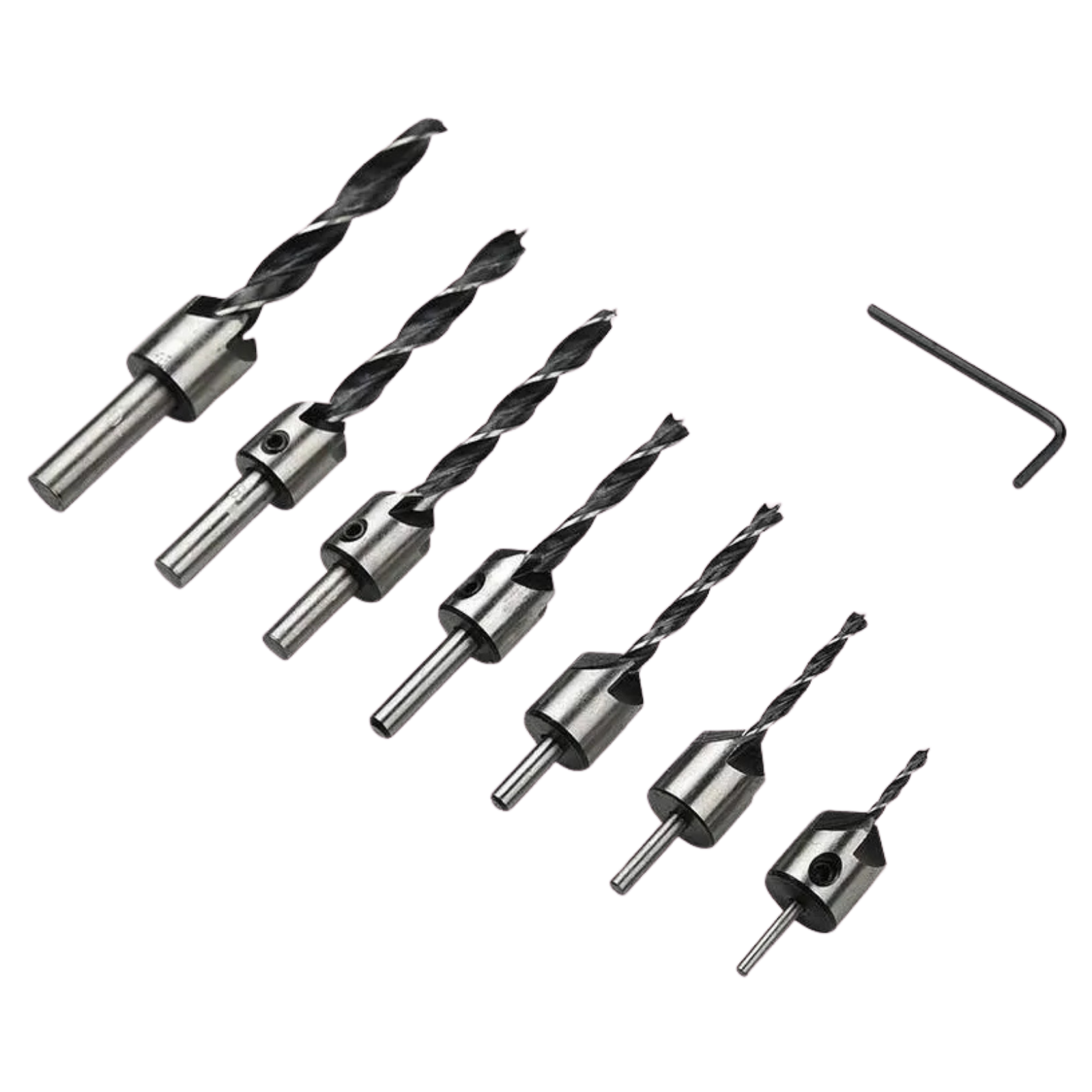 7 peças: 3 mm, 4 mm, 5 mm, 6 mm, 7 mm, 8 mm, 10 mm, chave hexagonal