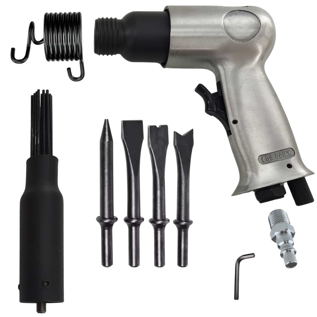 Indicado para remoção de tintas, ferrugem, crostas em cascos de navios, respingos de concreto, cortar rebites de lonas de freio em caminhões, entre outros. Mantenha a ferramenta constantemente lubrificada e utilize sempre o regulador de pressão e o lubrificador de linha com óleo pneumático.
