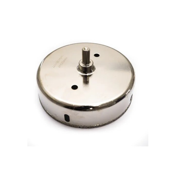 Serra copo de aço galvanizado, com borda de corte revestida com diamantes sintéticos, para cortes refrigerados em tijolo, pedra, concreto, alto desempenho em cortes de vidro e porcelanato, deixando as superfícies lisas sem arestas ou rebarbas.